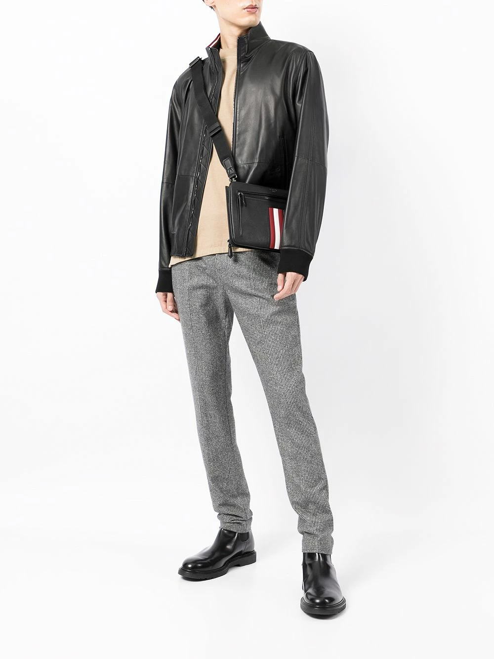 Bride porté épaule détachable et ajustable, confection étanche, poche zippée sur le devant, fermeture zippée sur le dessus, compartiment principal, poche intérieure plaquée, fentes pour carte. Couleur : noir. Matière : cuir.