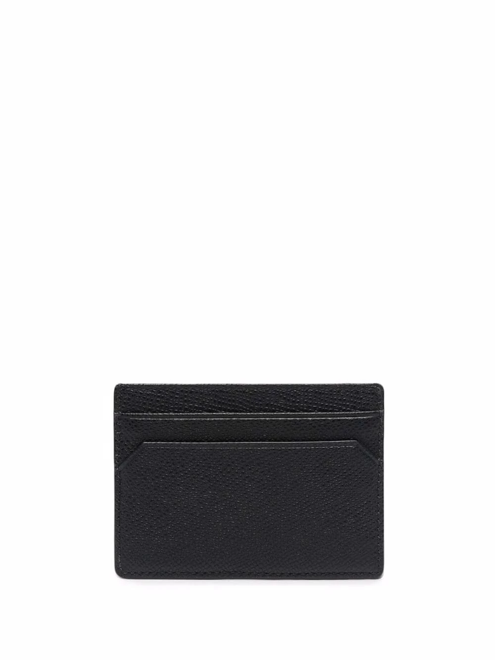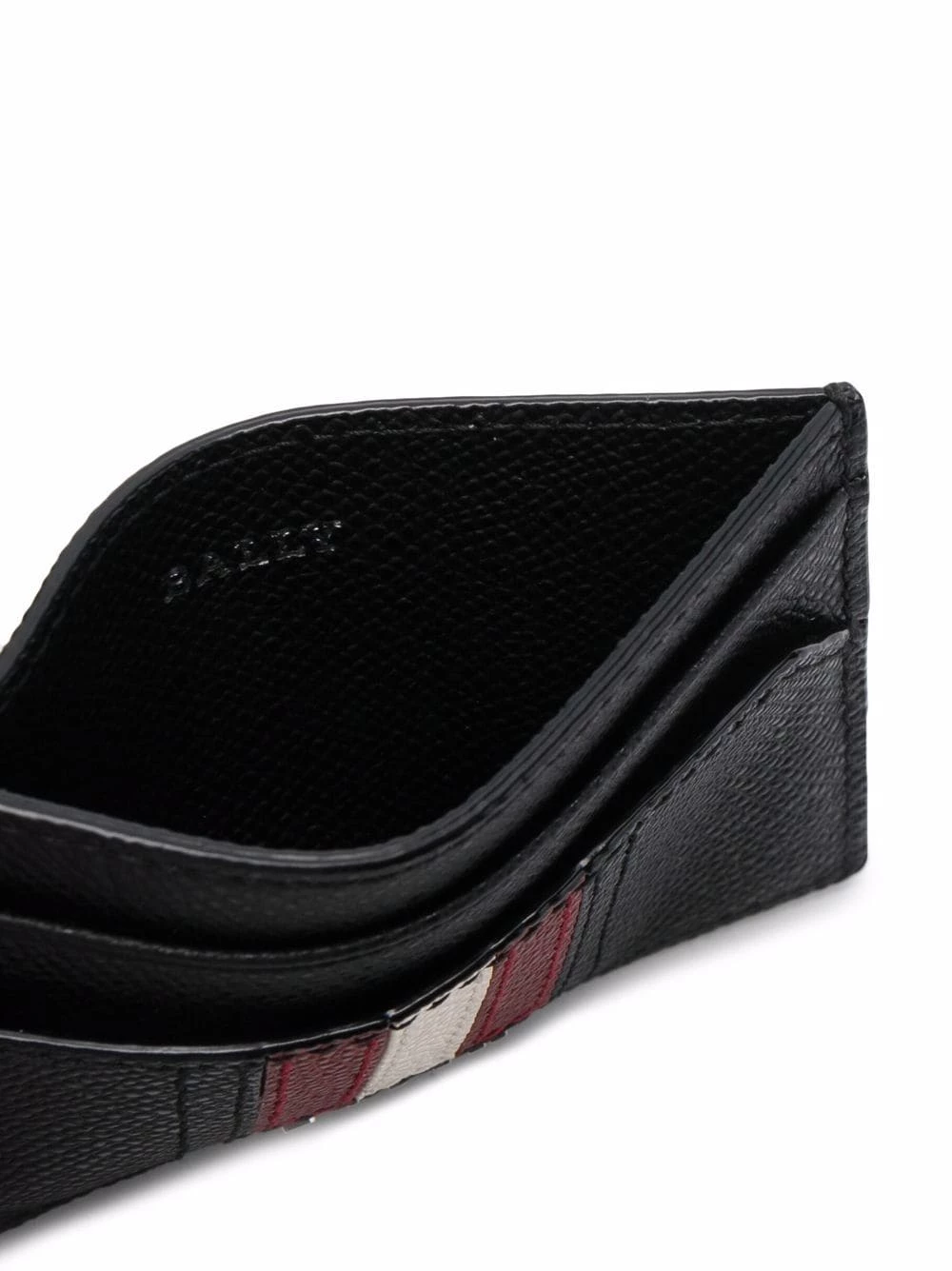 Rayures verticales, logo doré, fentes pour carte. Couleur : noir. Matière : cuir.