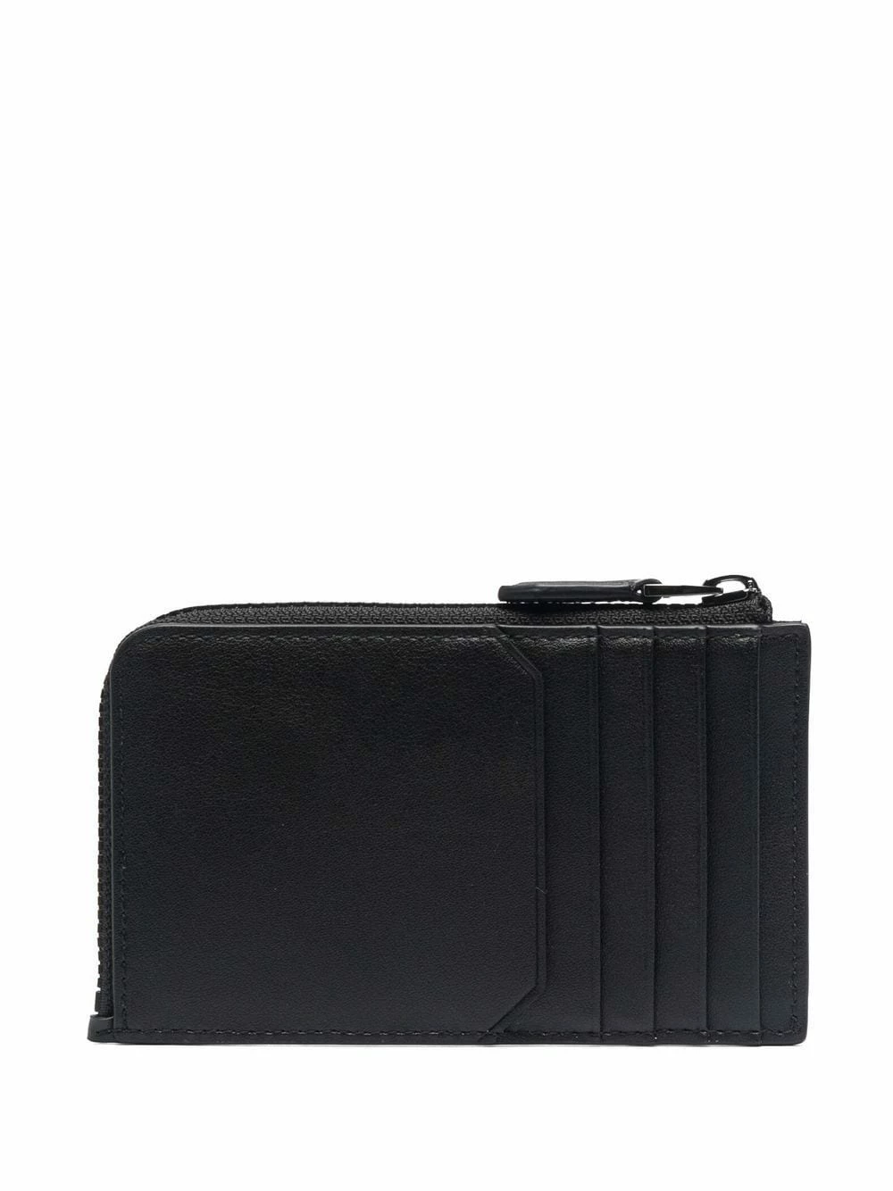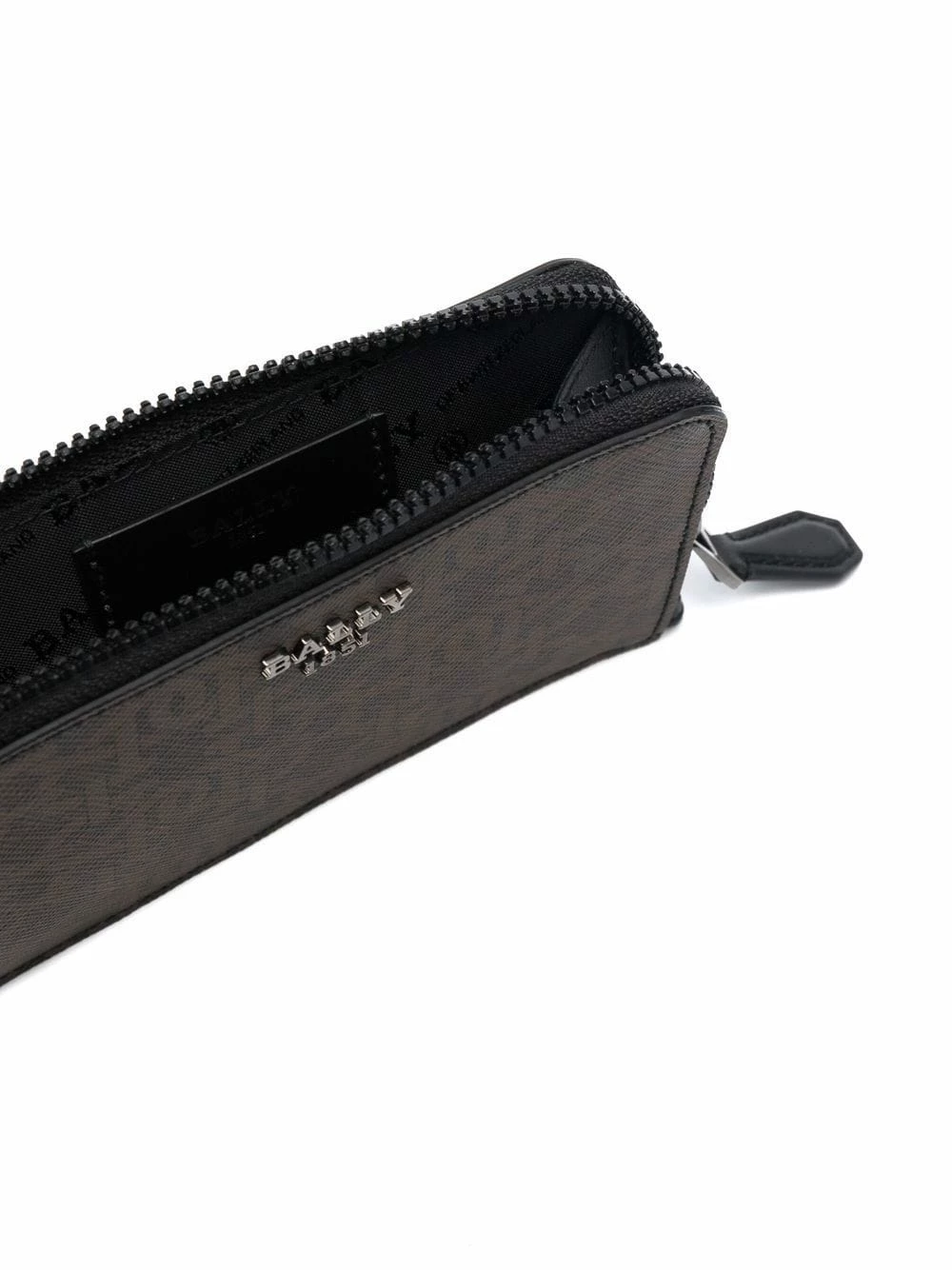 Imprimé monogrammé, fermeture zippée sur le dessus, compartiments intérieurs pour carte, poche intérieure. Matière : cuir.