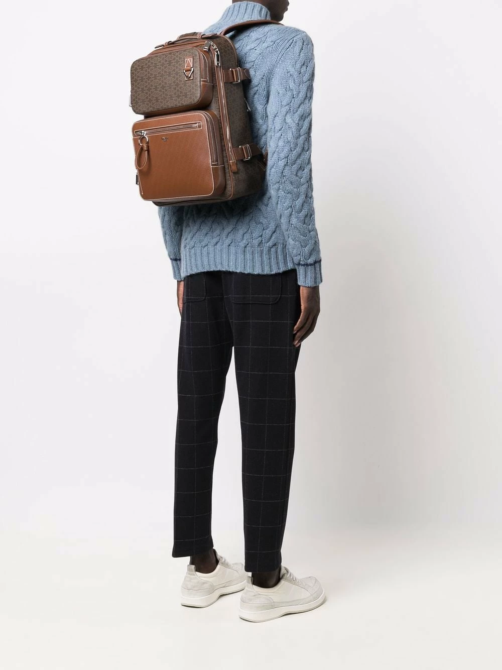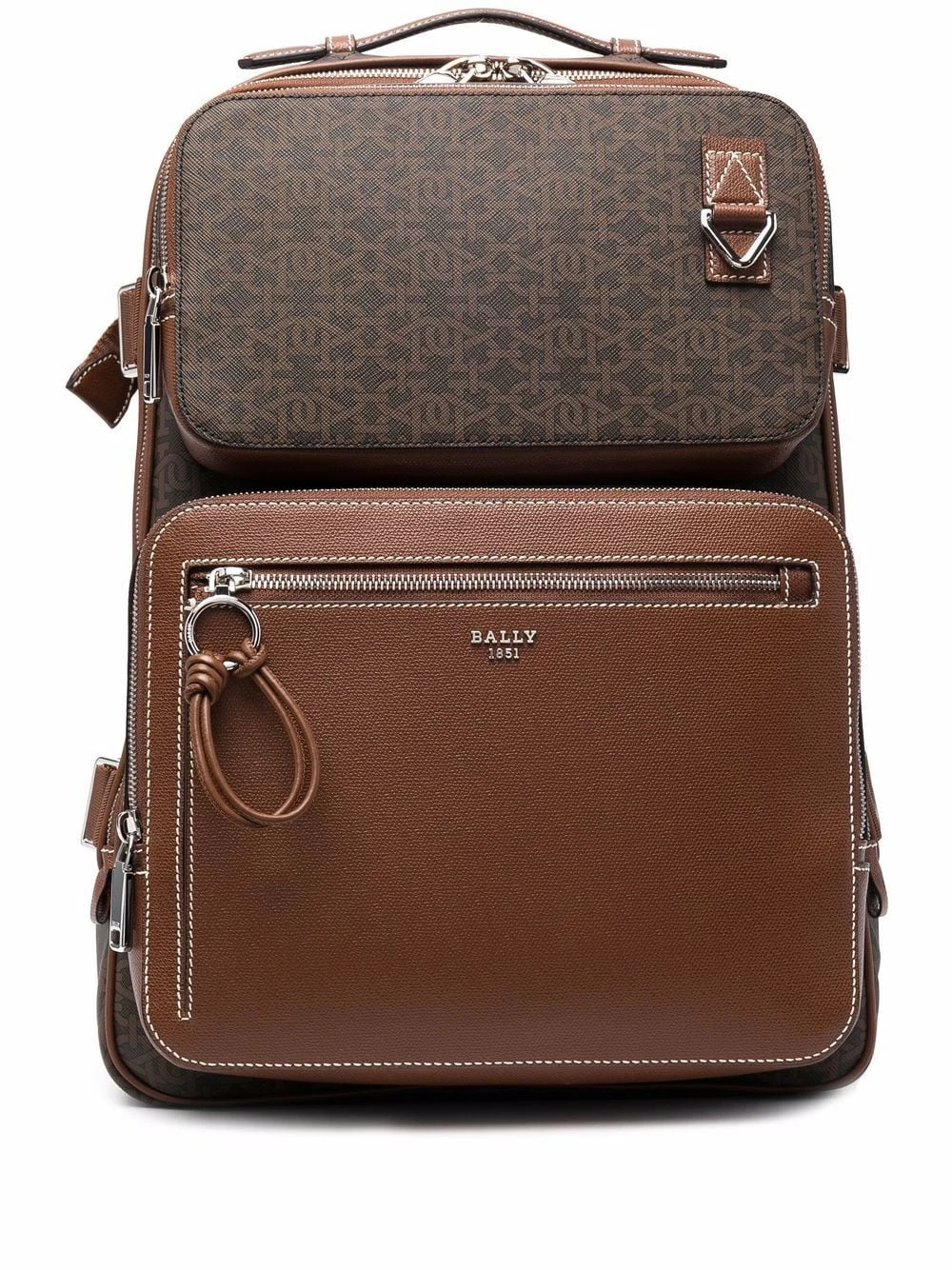 Motif monogrammé, fermeture zippée devant, coutures contrastantes, brides porté épaule ajustables. Couleur : marron.