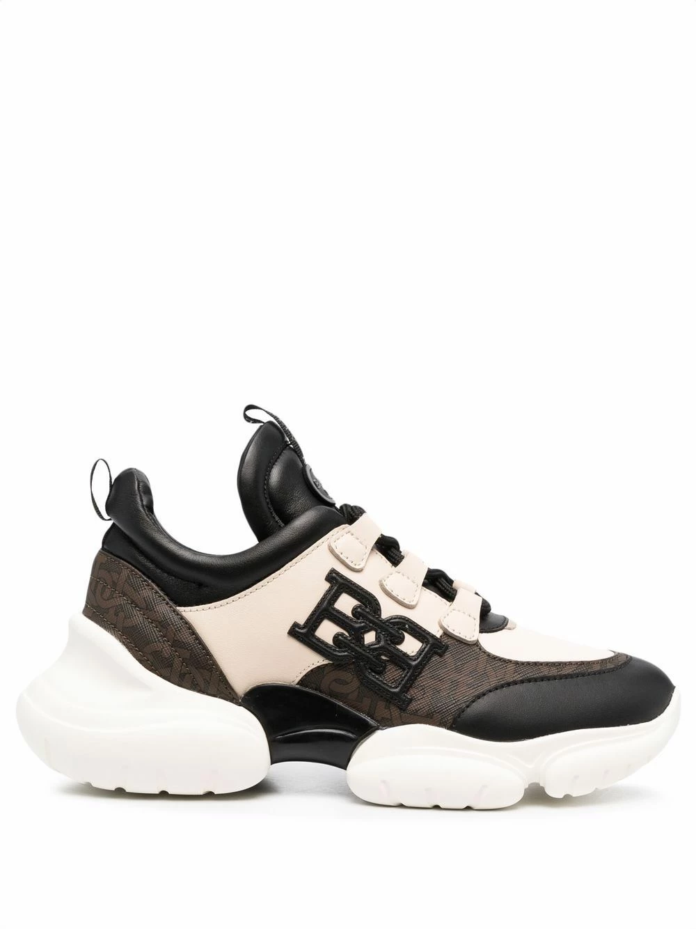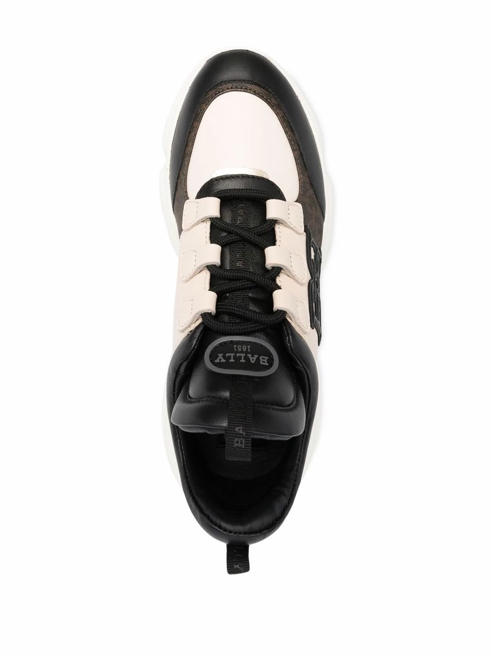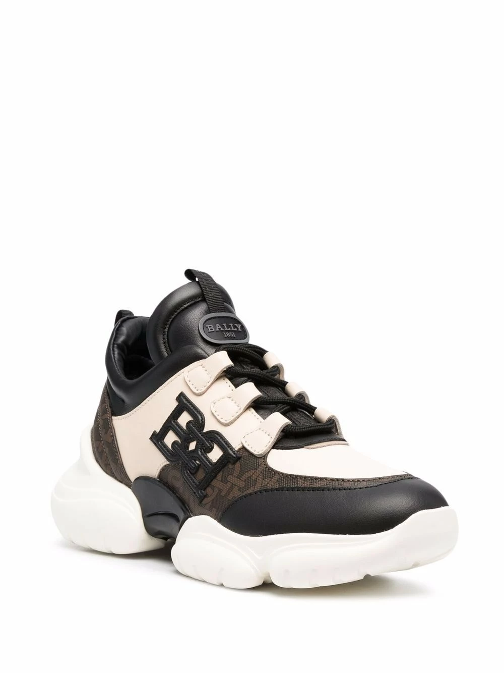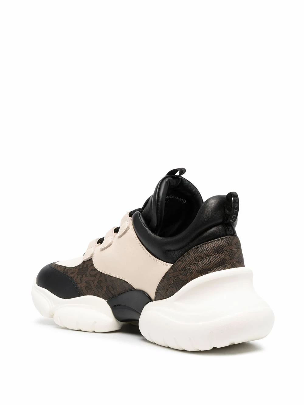 Semelle épaisse en caoutchouc, imprimé monogrammé, patch logo sur le côté, languette à patch logo, bout rond, fermeture à lacer sur le devant, semelle intérieure à logo. Matière : cuir.