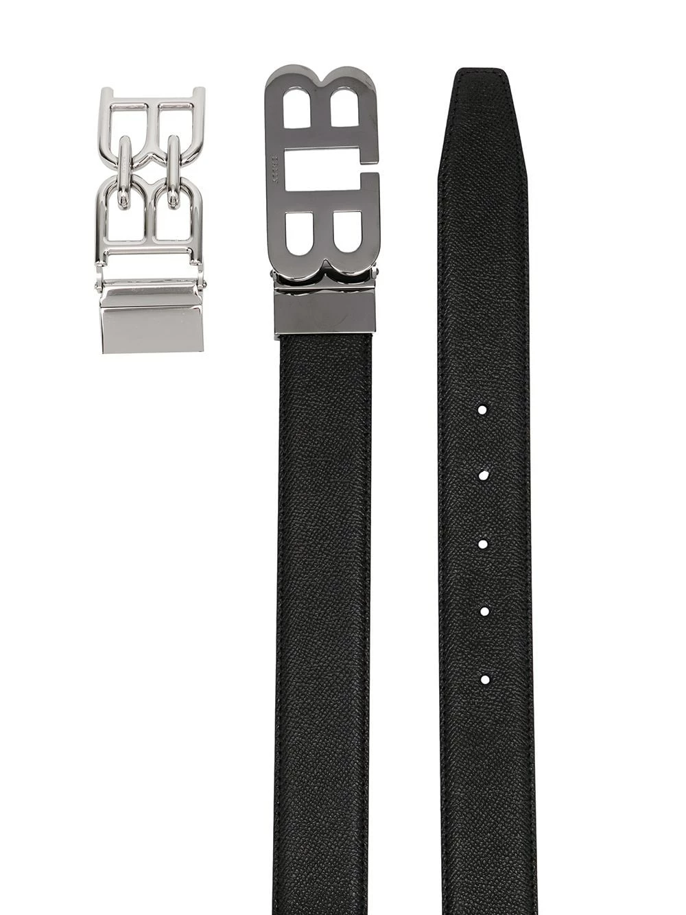 Fermeture à boucle argentée, logo argenté, design perforé. Couleur : noir. Matière : cuir.