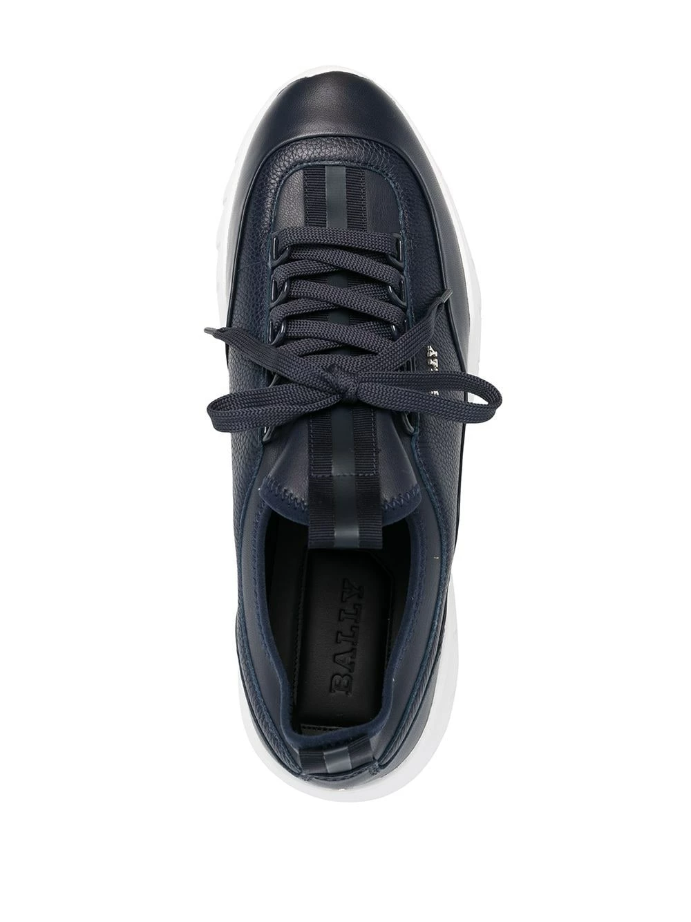 Plaque logo argentée, bout rond, fermeture à lacer sur le devant, semelle épaisse en caoutchouc.