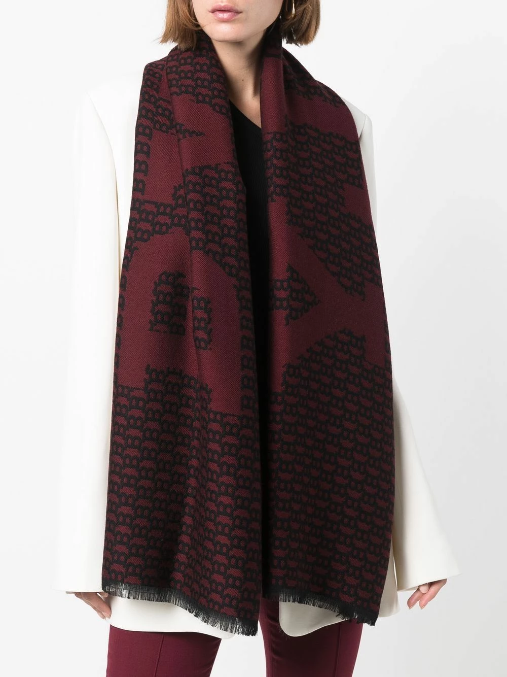 Motif monogrammé, logo imprimé sur le devant, bordure à franges.