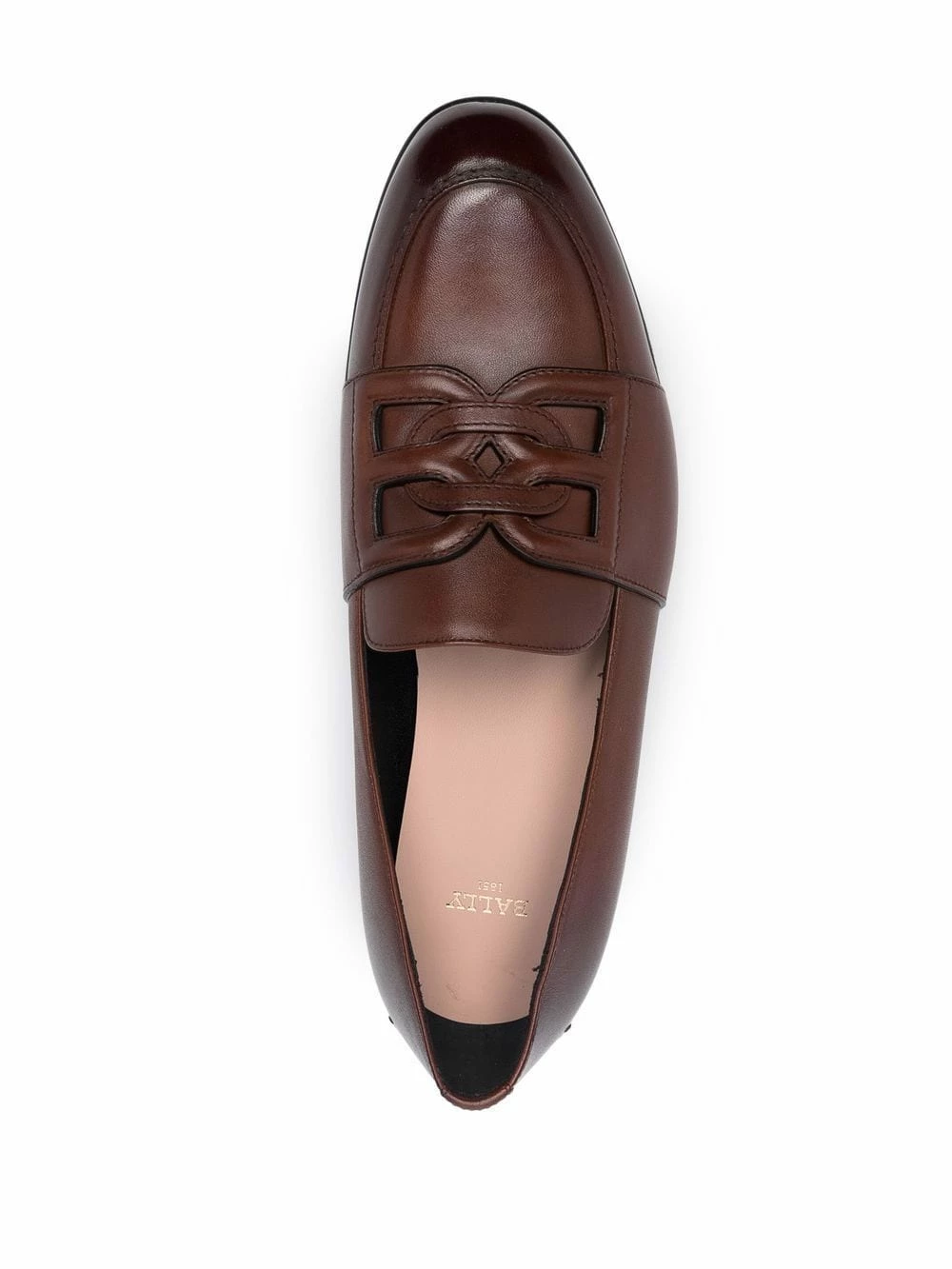 Marron, cuir de veau, design à enfiler, bout en amande, semelle plate en caoutchouc, semelle intérieure à logo.