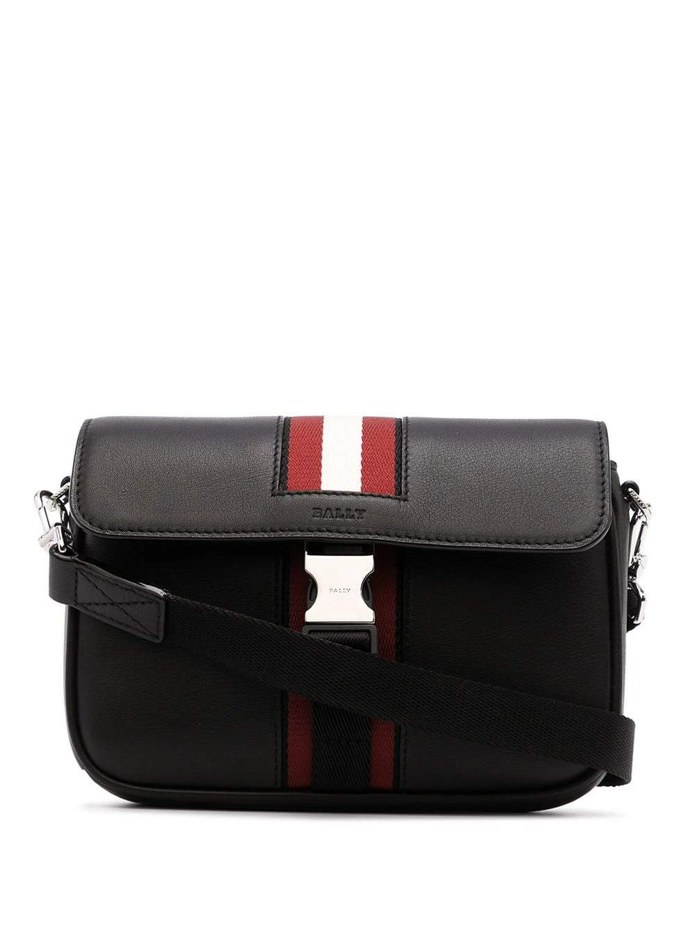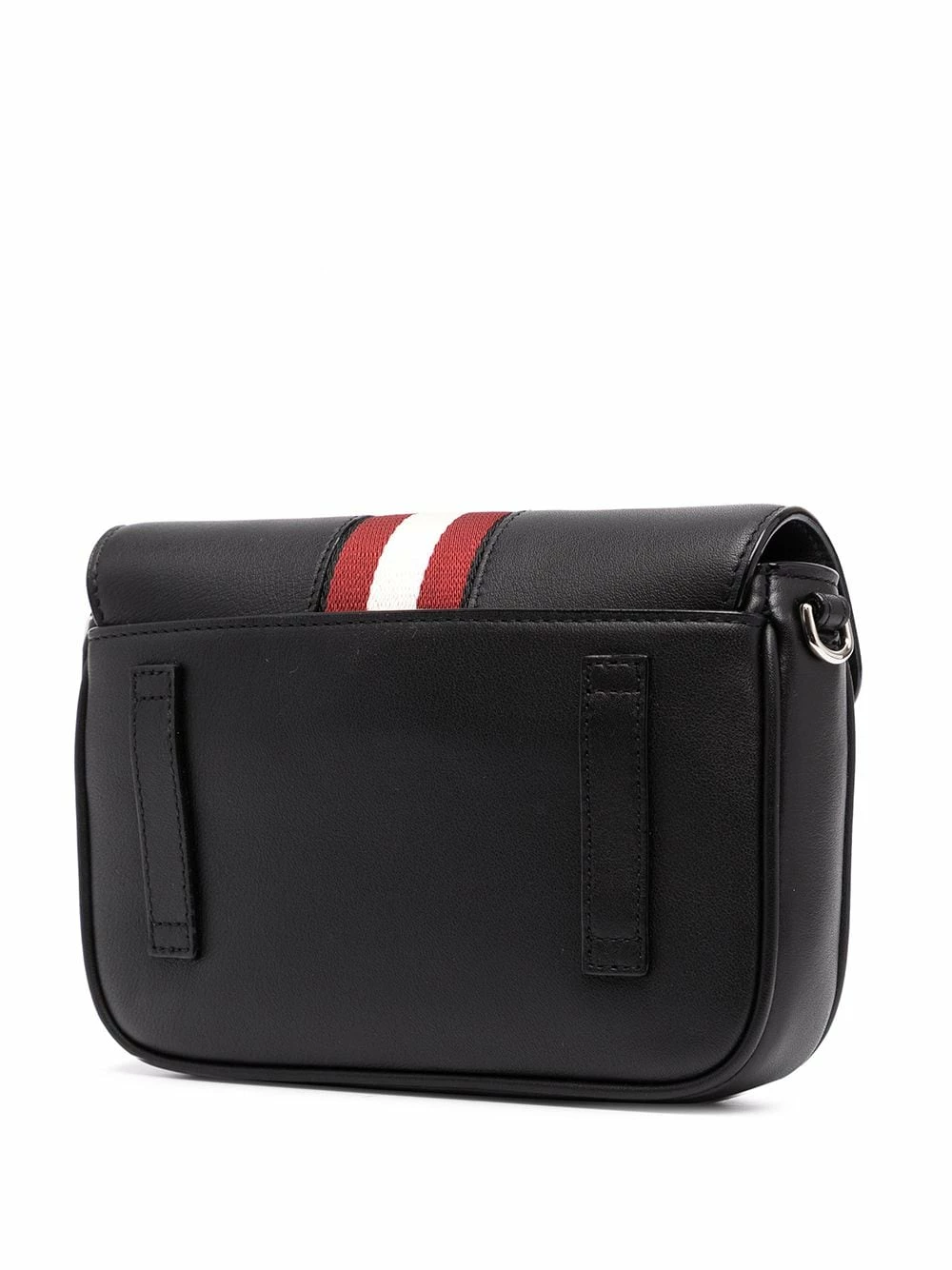 Détails rayés, logo gravé, rabat sur le dessus, fermeture à boucle, compartiments intérieurs pour carte, bride porté épaule ajustable. Couleur : noir. Matière : cuir.