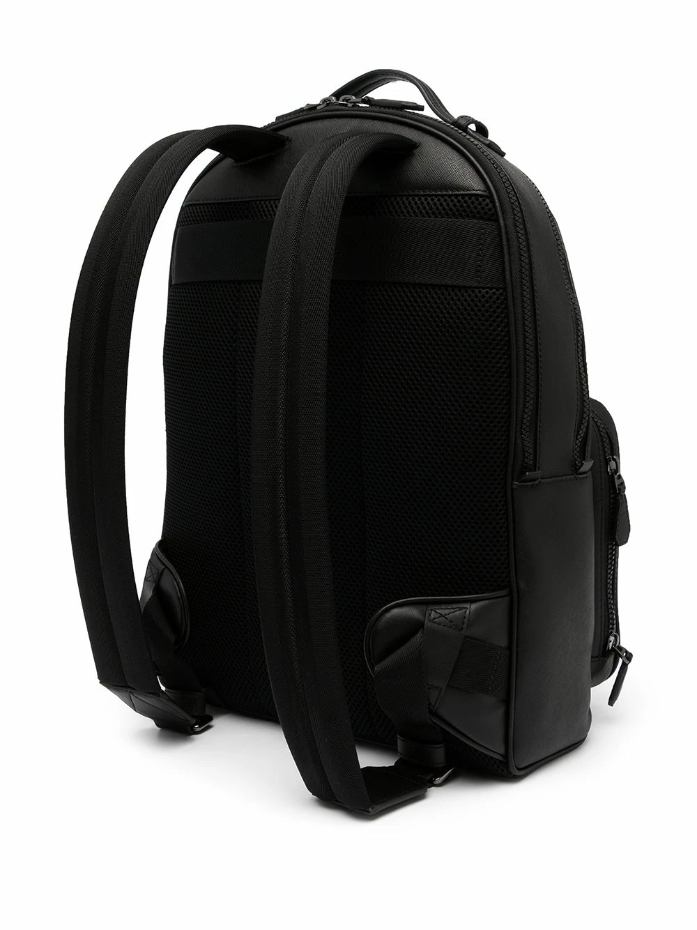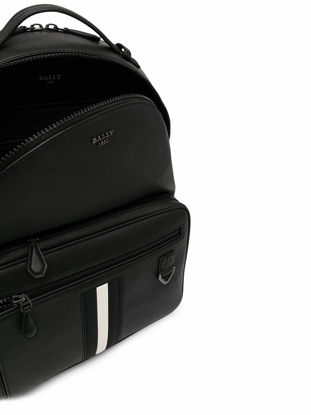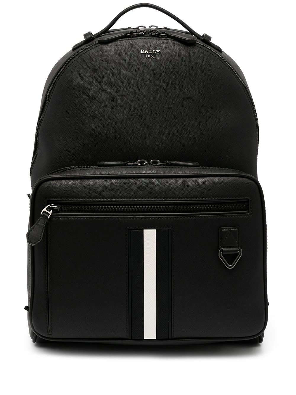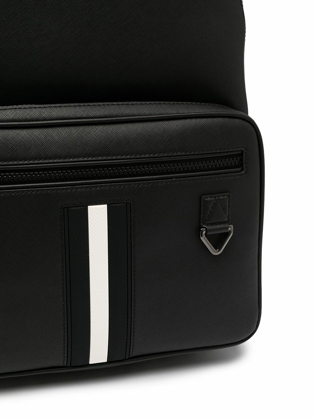 Détails rayés, fermeture zippée sur le dessus, compartiment zippé sur le devant, poche intérieure. Matière : cuir.