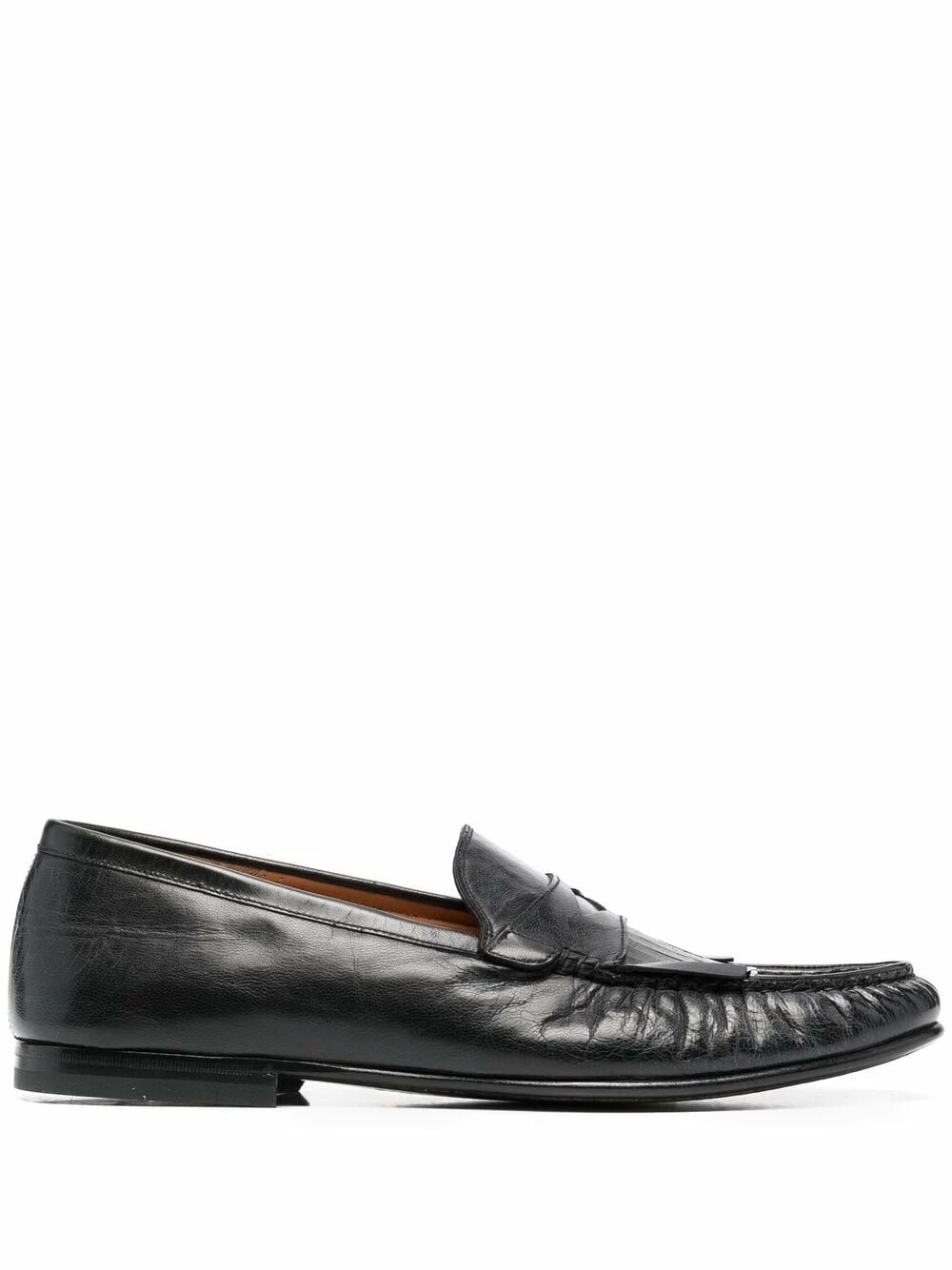 Semelle plate en caoutchouc, bout en amande. Couleur : noir. Matière : cuir.